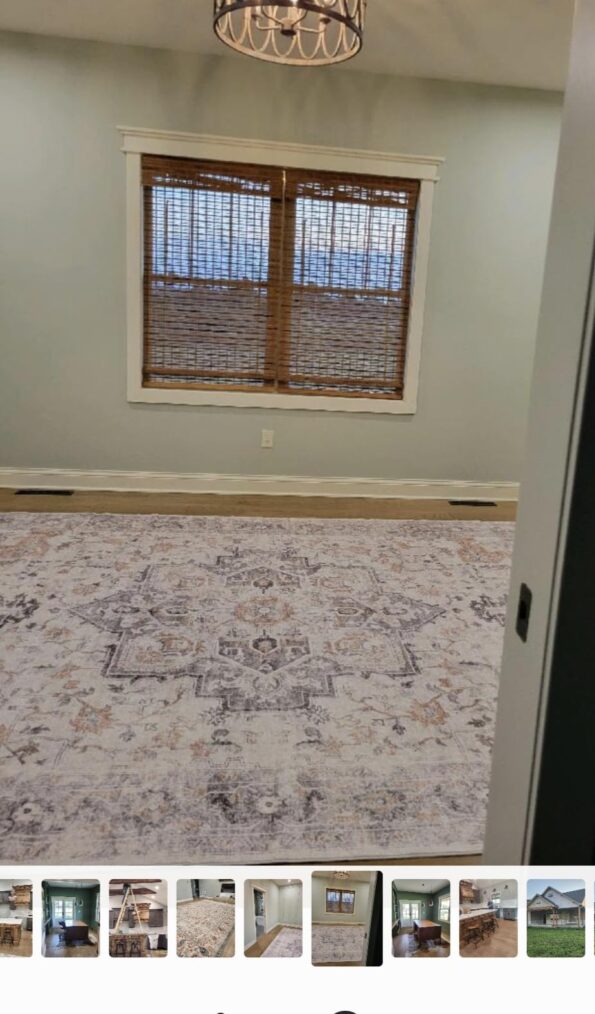 Order the 8×10 taupe rug. It appears more green. Feels nice, fits the space. Doesn’t vacuum over well, could be my vacuum tho.